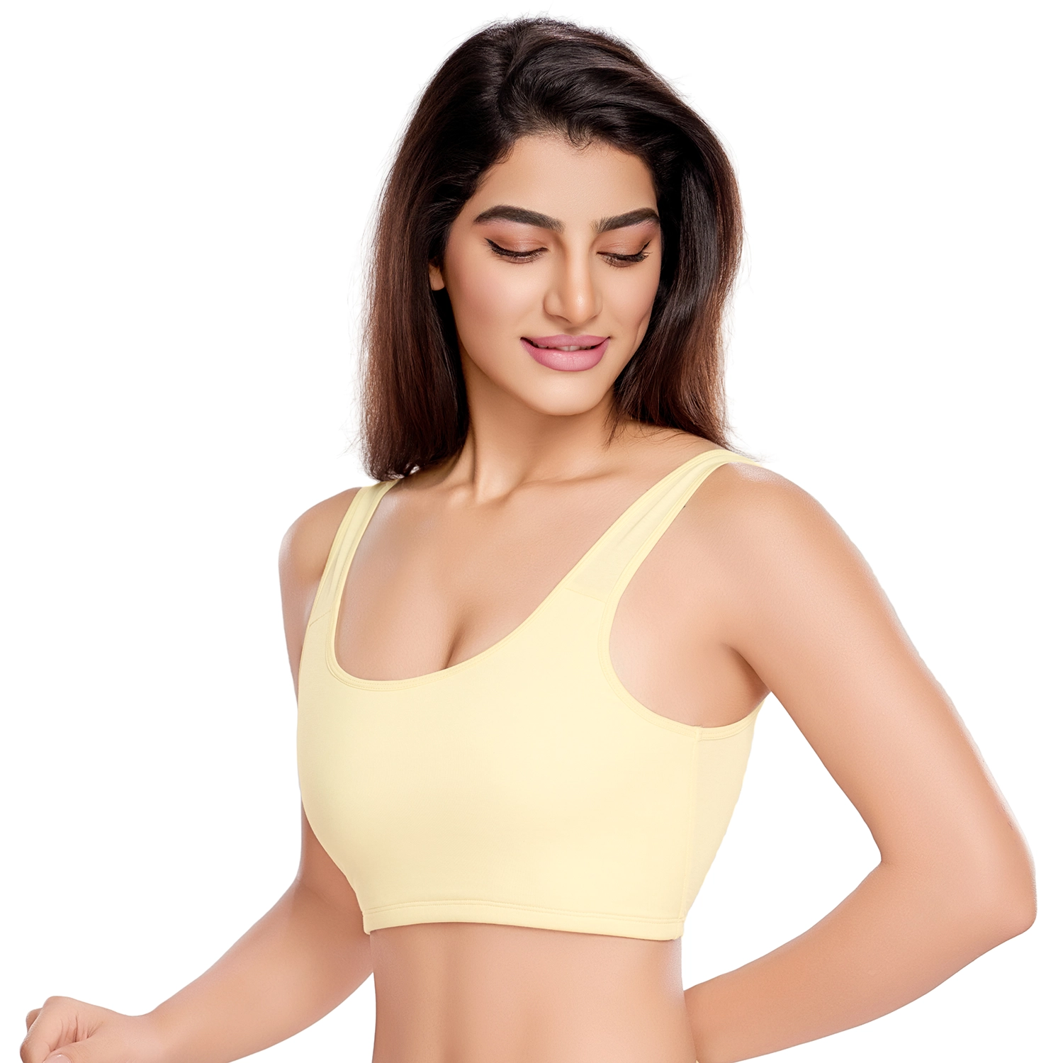 Stay active and comfortable with this classic seamless sports bra, designed to give you all-day support without compromising on comfort. Crafted from soft, stretchable fabric, it offers a smooth fit that feels like second skin. The broad underband and adjustable straps provide extra support and stability. Perfect for light workouts, yoga, or daily wear.
