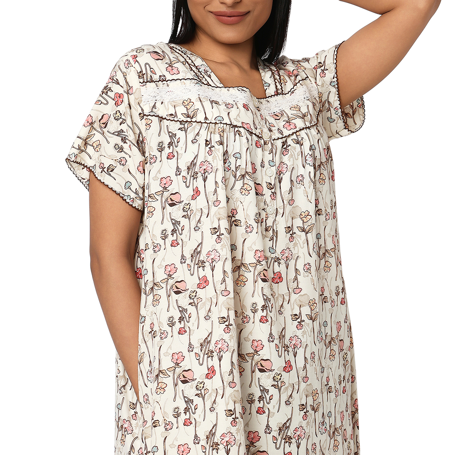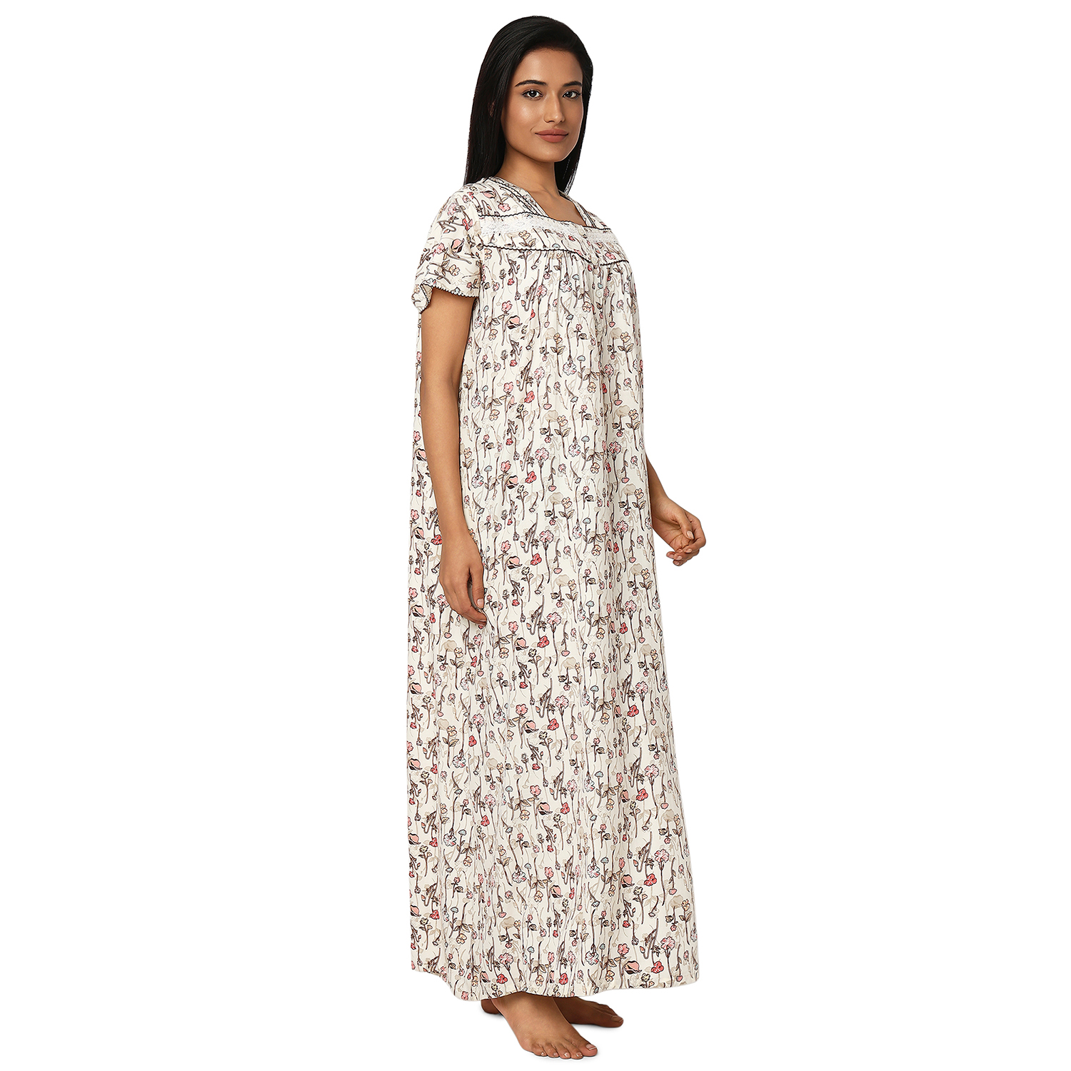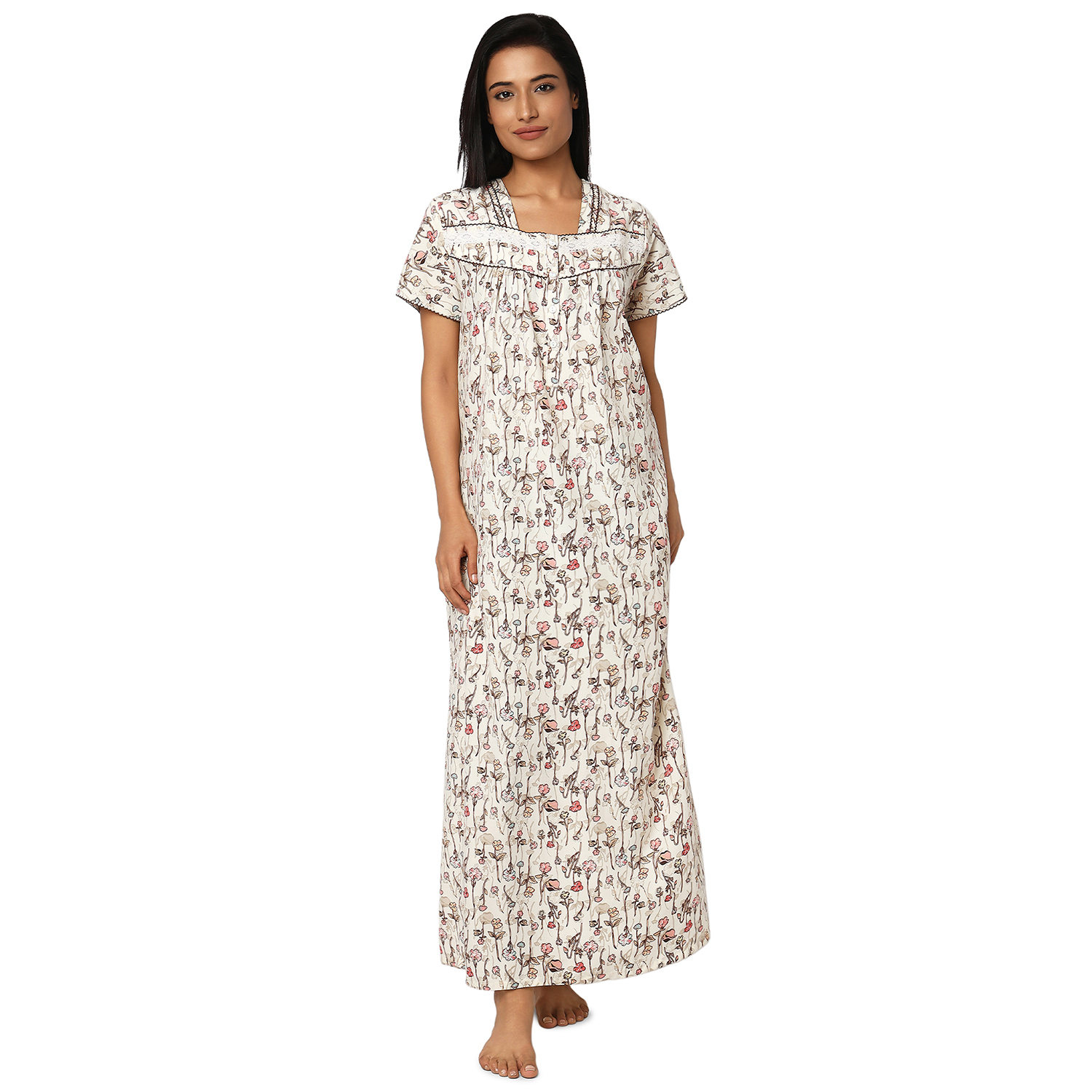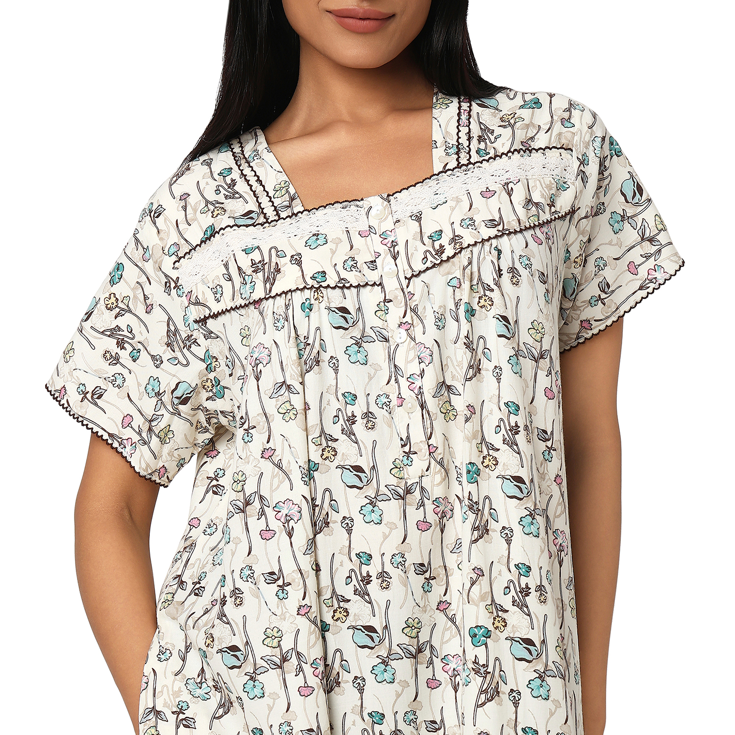 JSS 12013-Printed Poly Viscose Square Neck Half Sleeved Nighty
