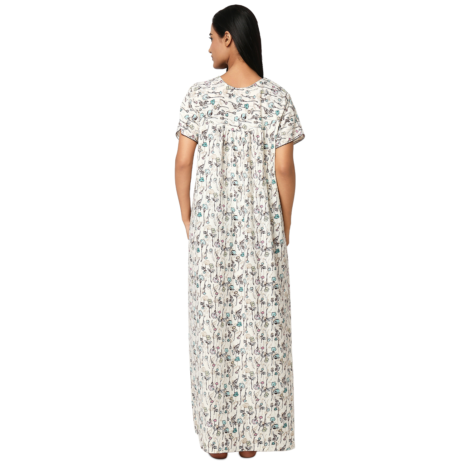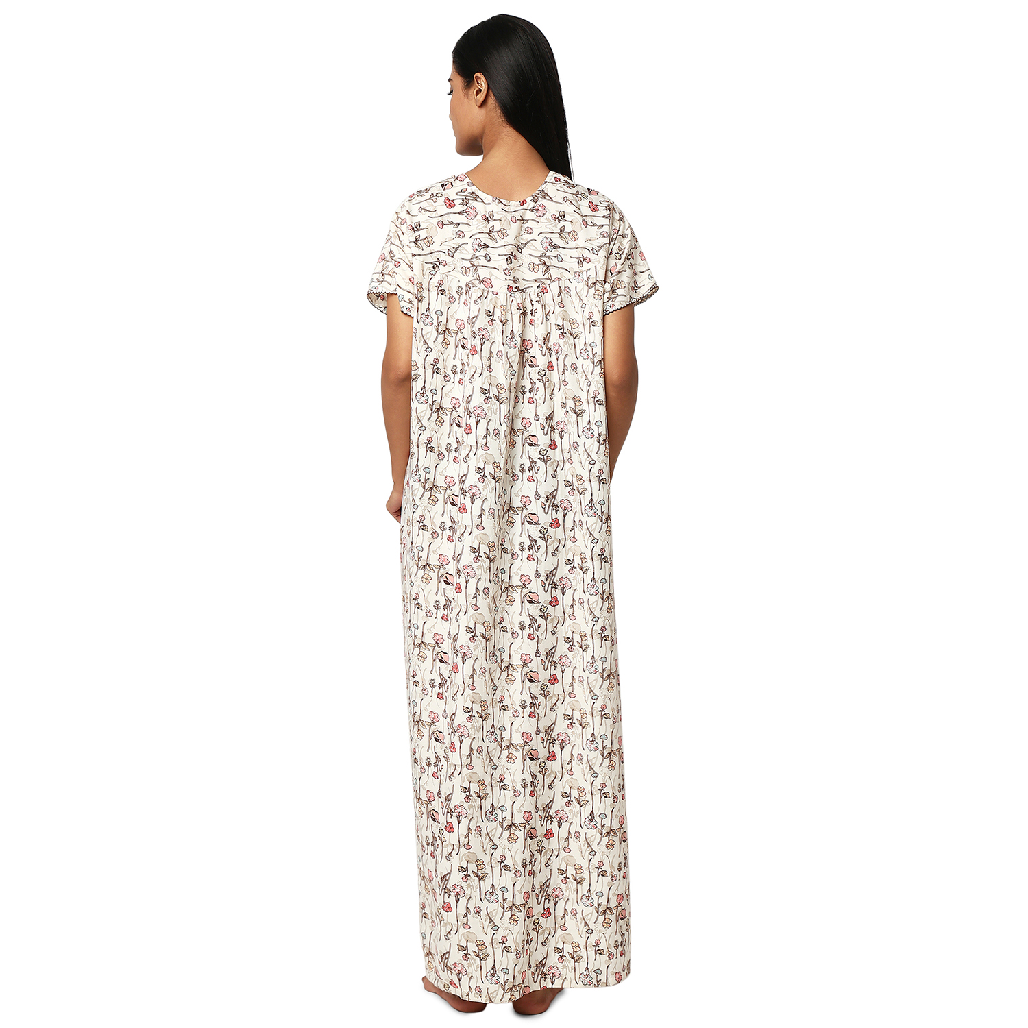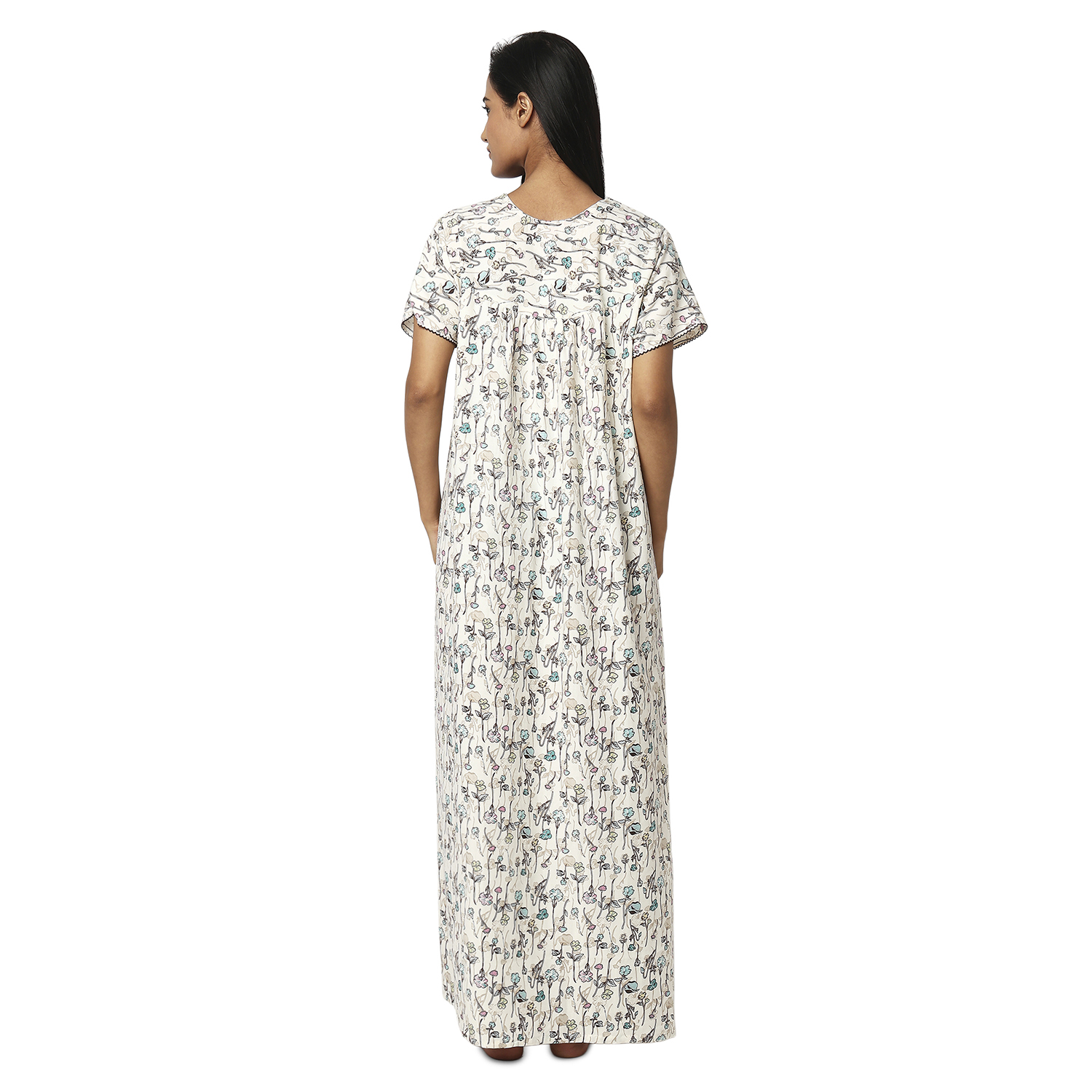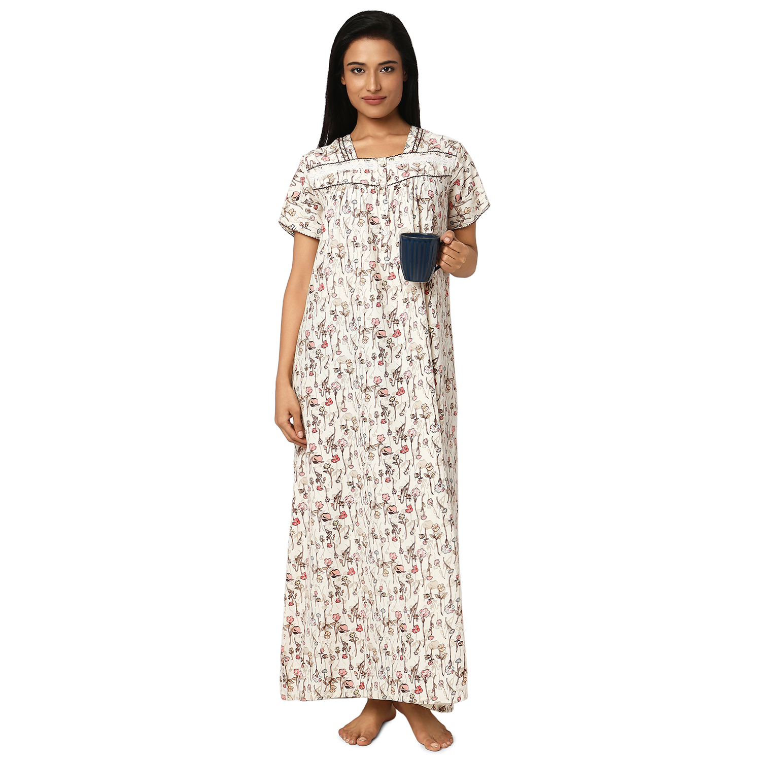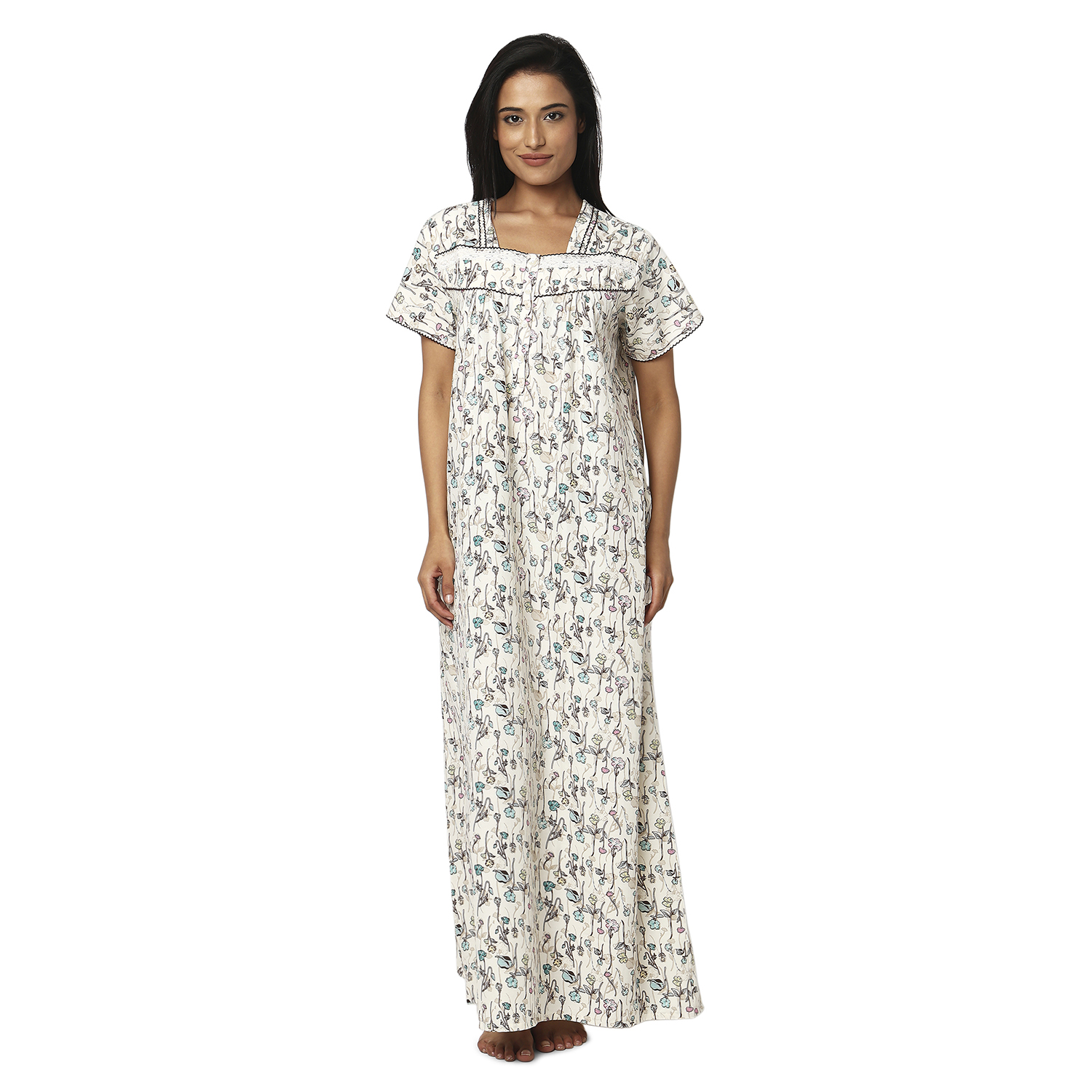 JSS 12013-Printed Poly Viscose Square Neck Half Sleeved Nighty