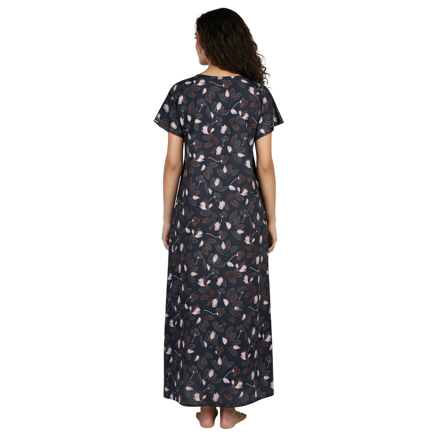 JSS 12083 – Printed Poly-Viscose Nighty for Women – Round Neck, Half Sleeves