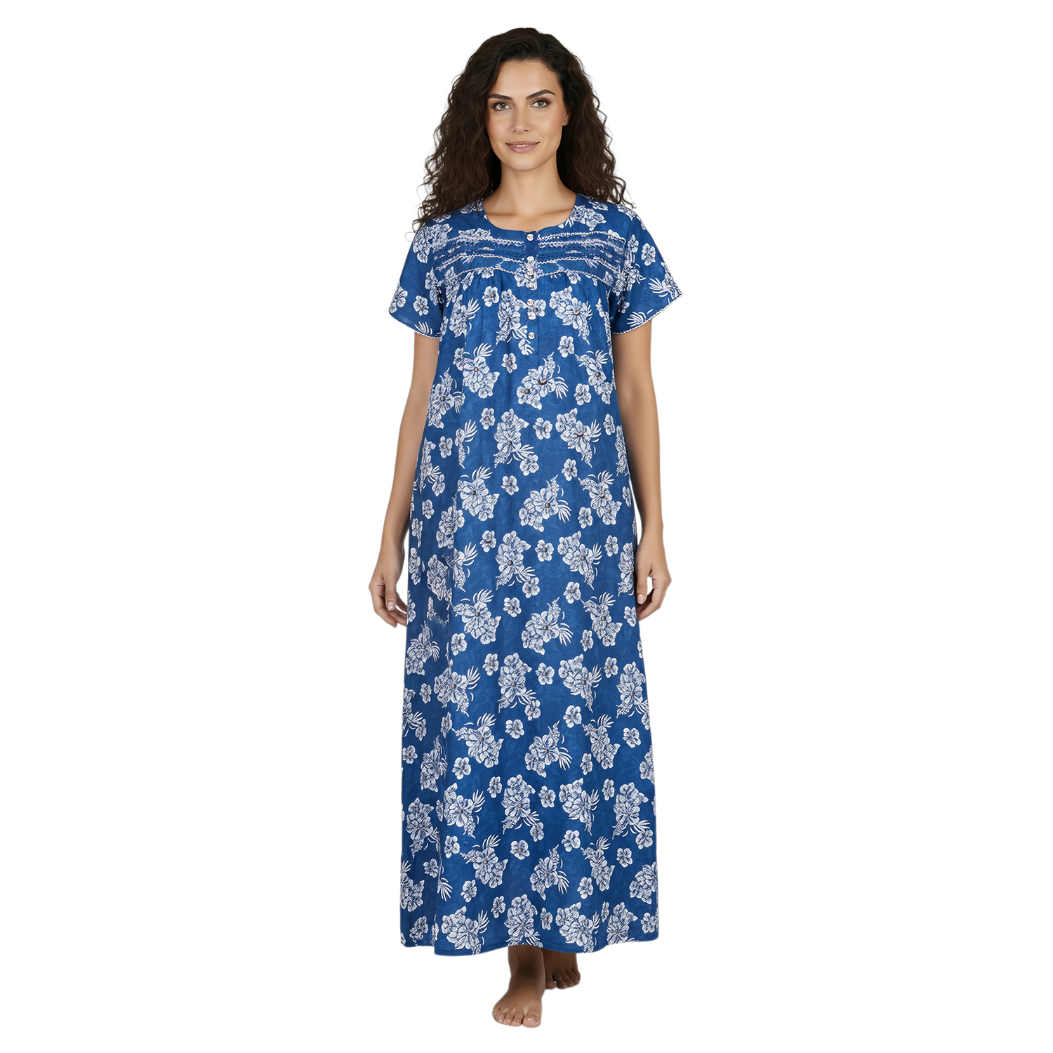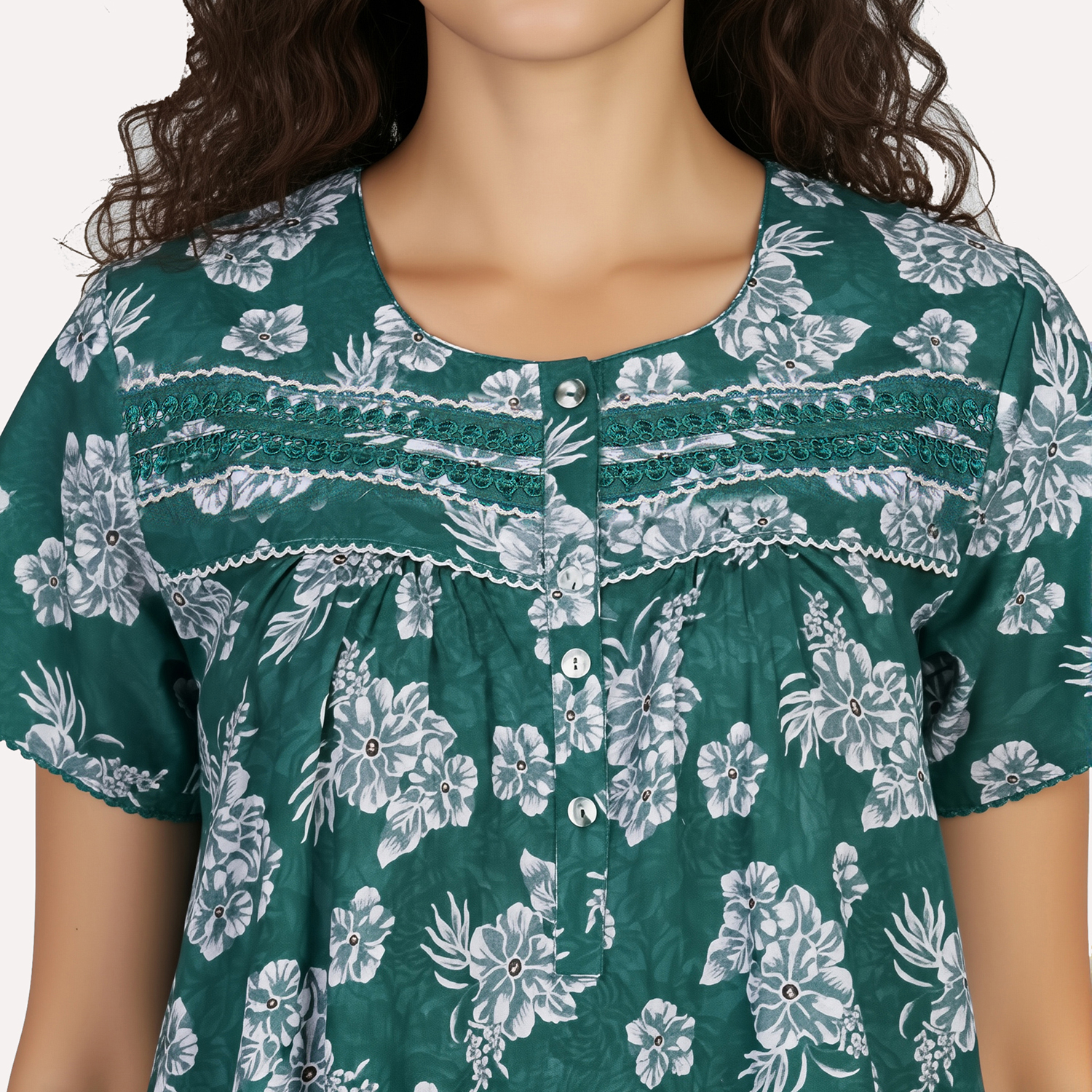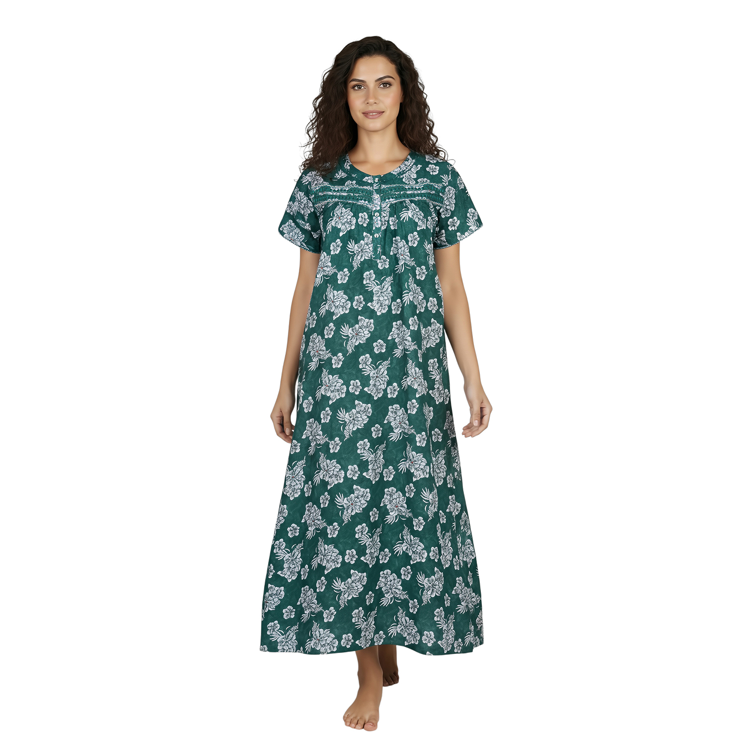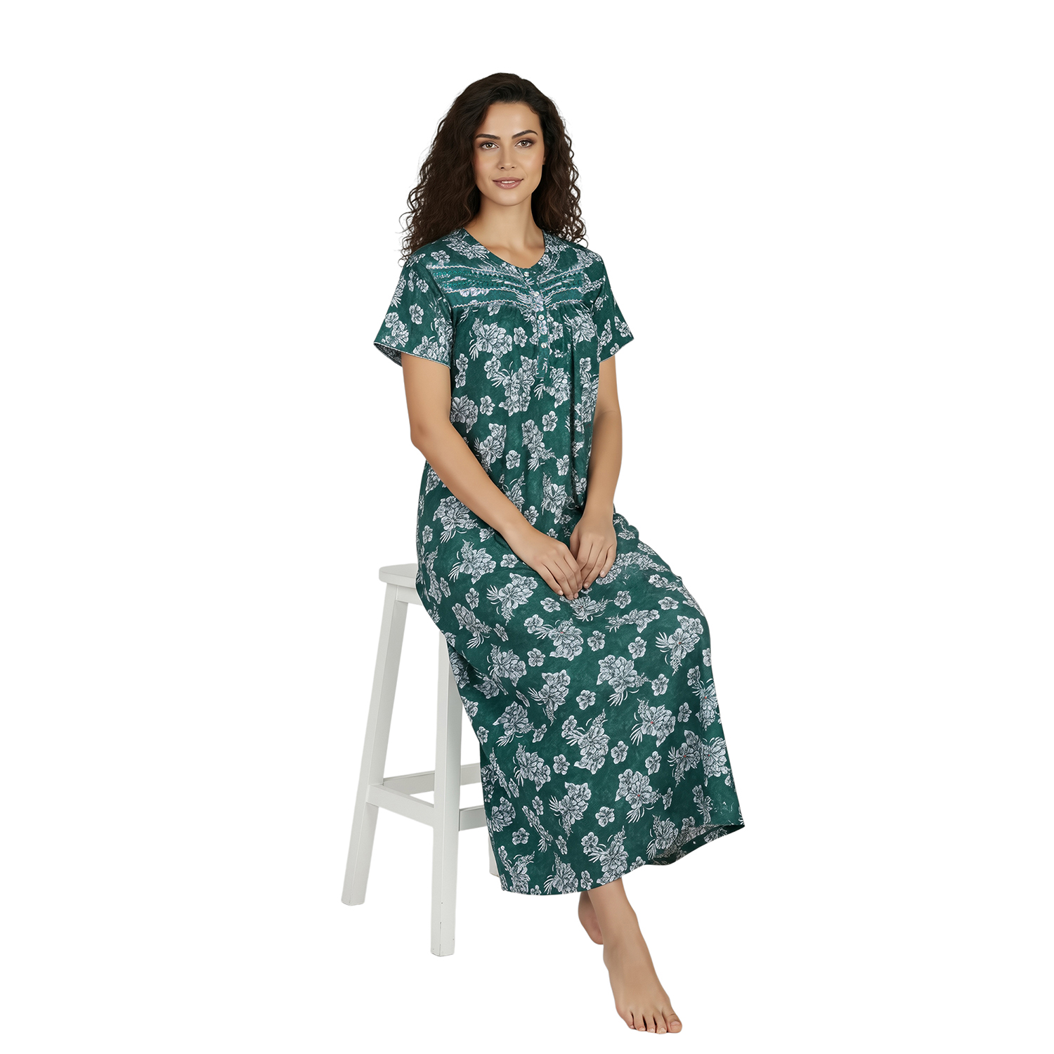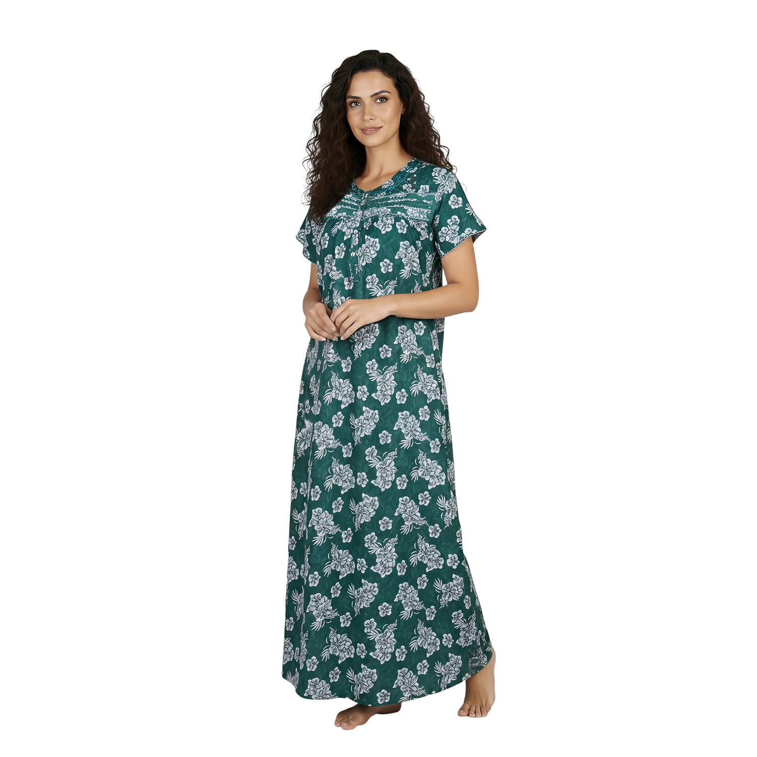 JSS 12089 – Printed Poly-Viscose Nighty for Women – Round Neck, Half Sleeves