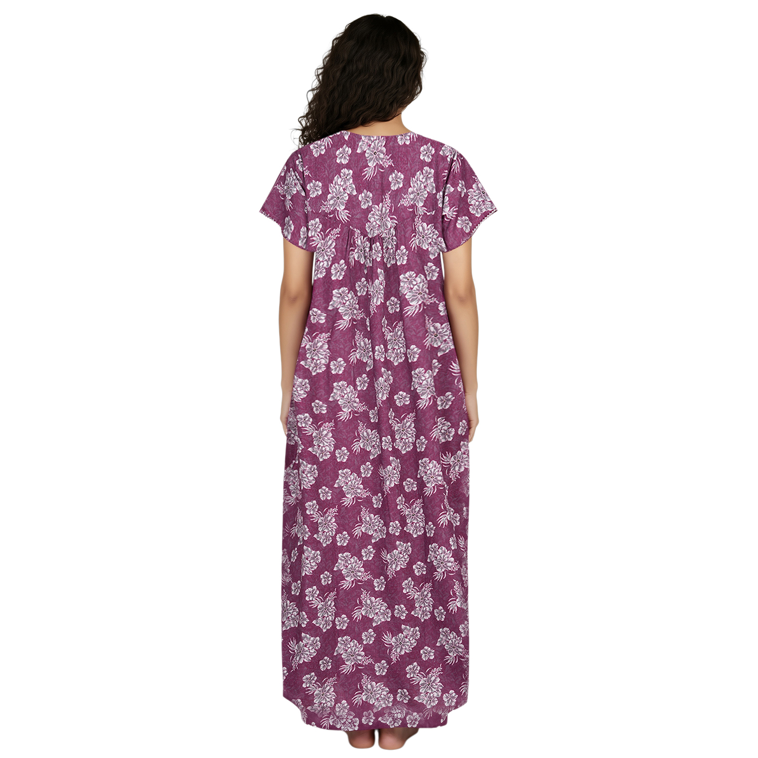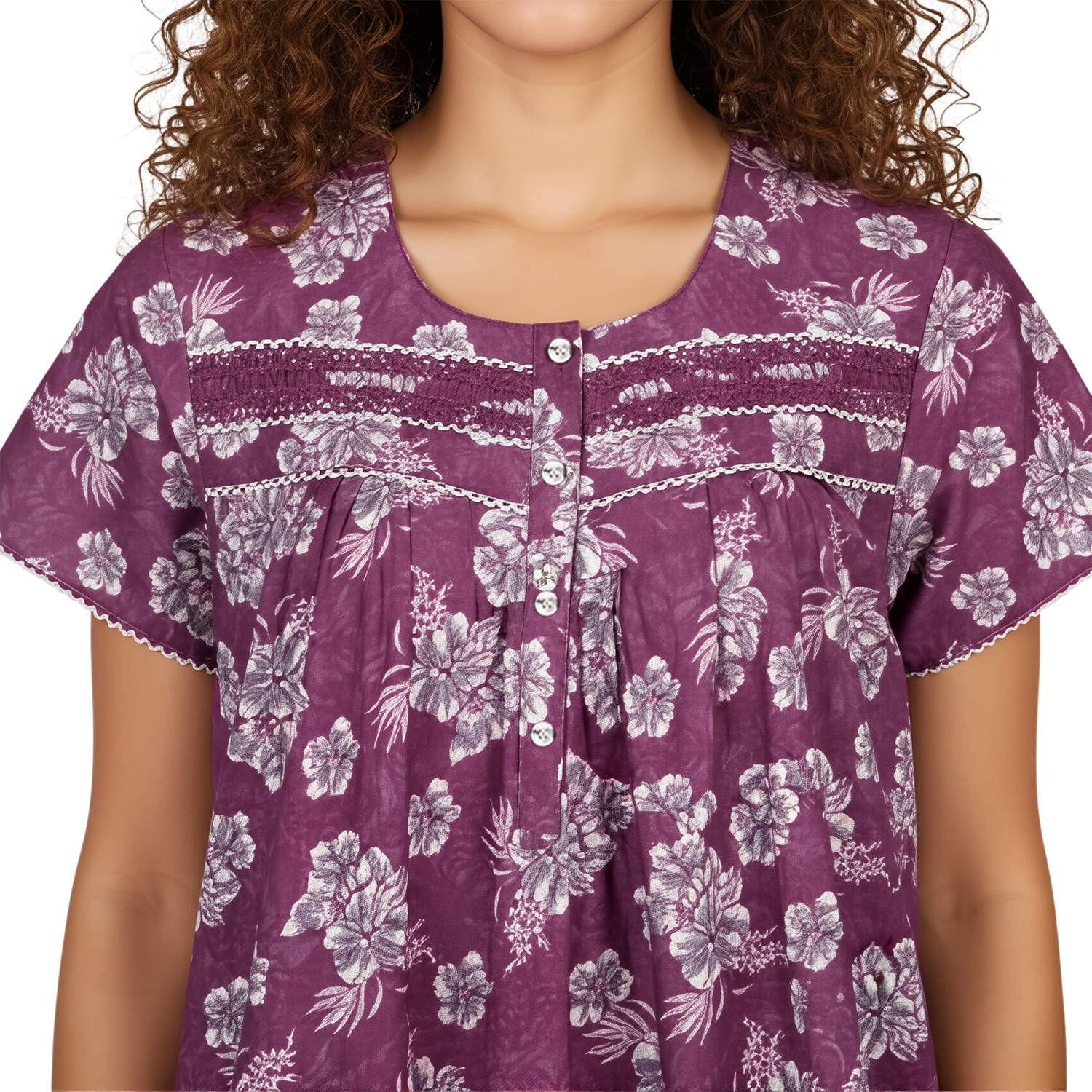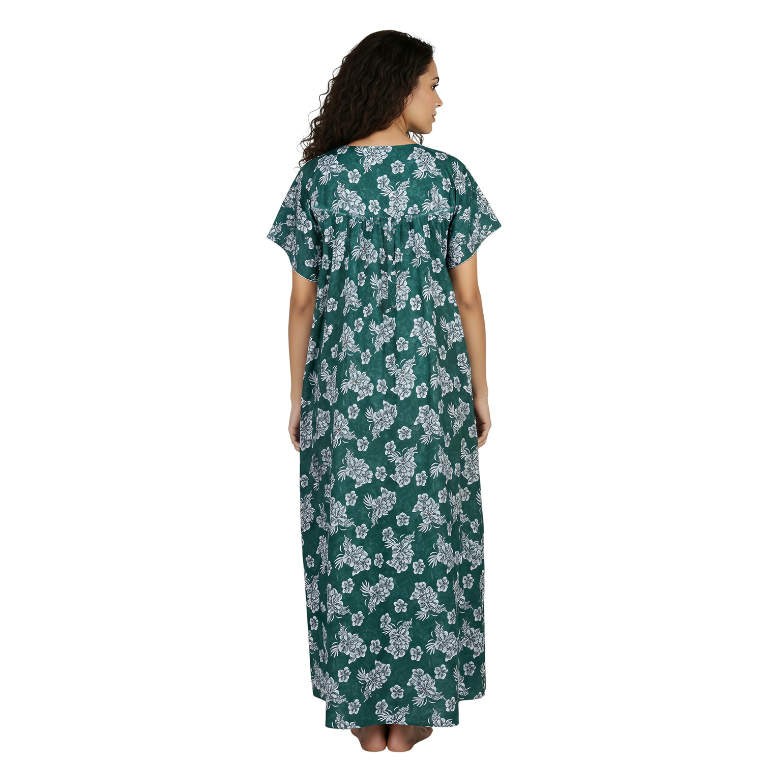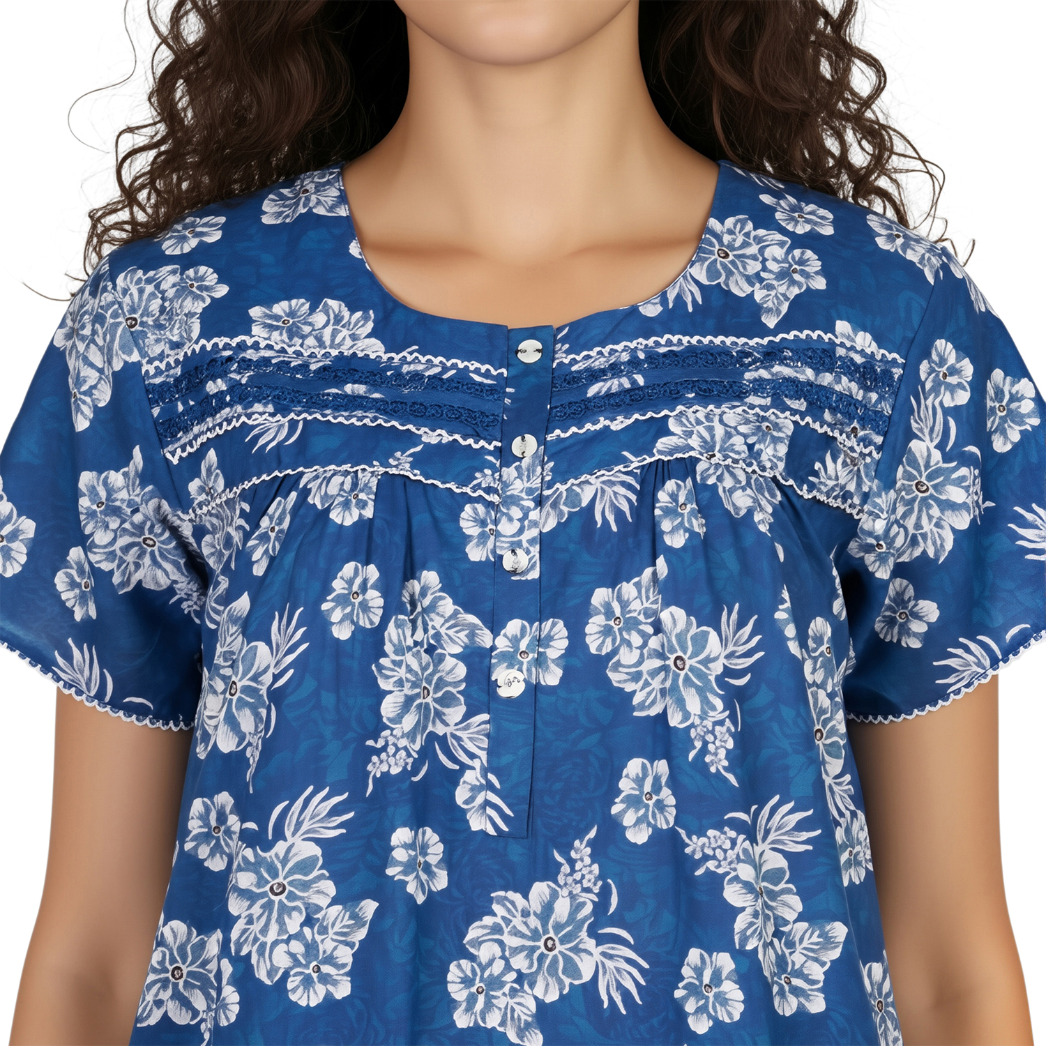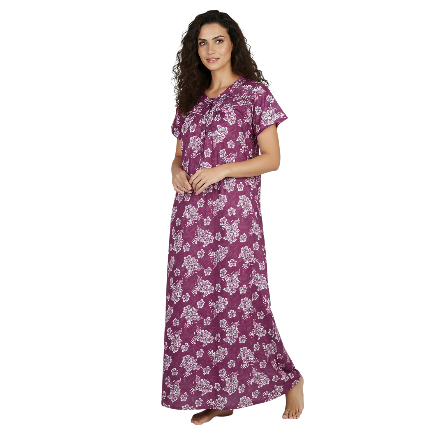 JSS 12089 – Printed Poly-Viscose Nighty for Women – Round Neck, Half Sleeves