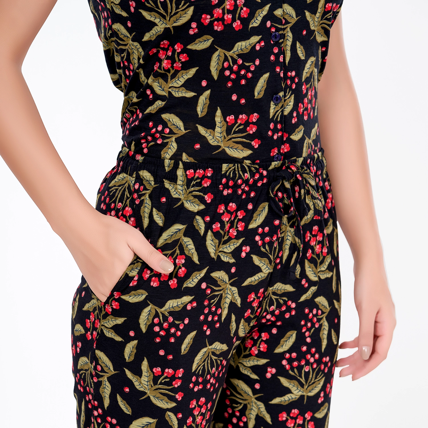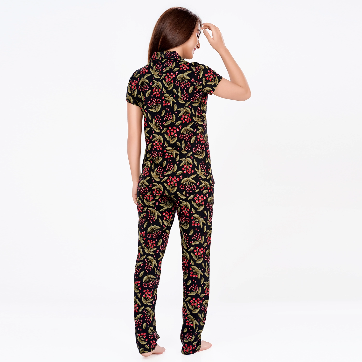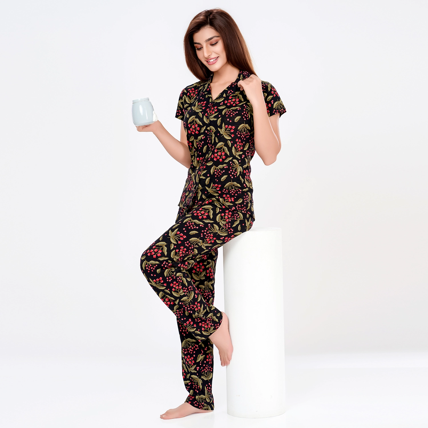 Juliet Women’s Printed Premium Cotton Shirt Pyjama Set Night Suit R-PJ-19430 Black.