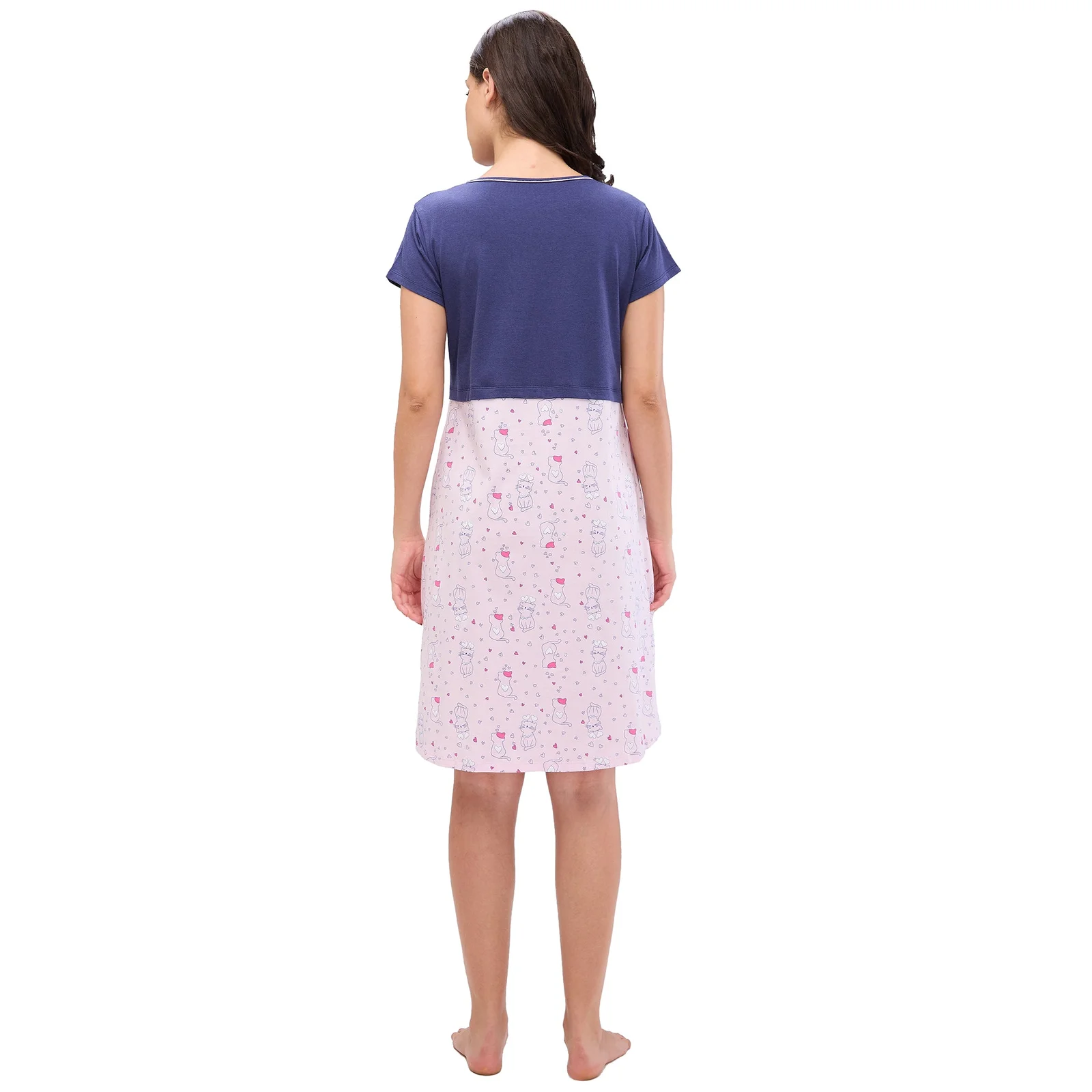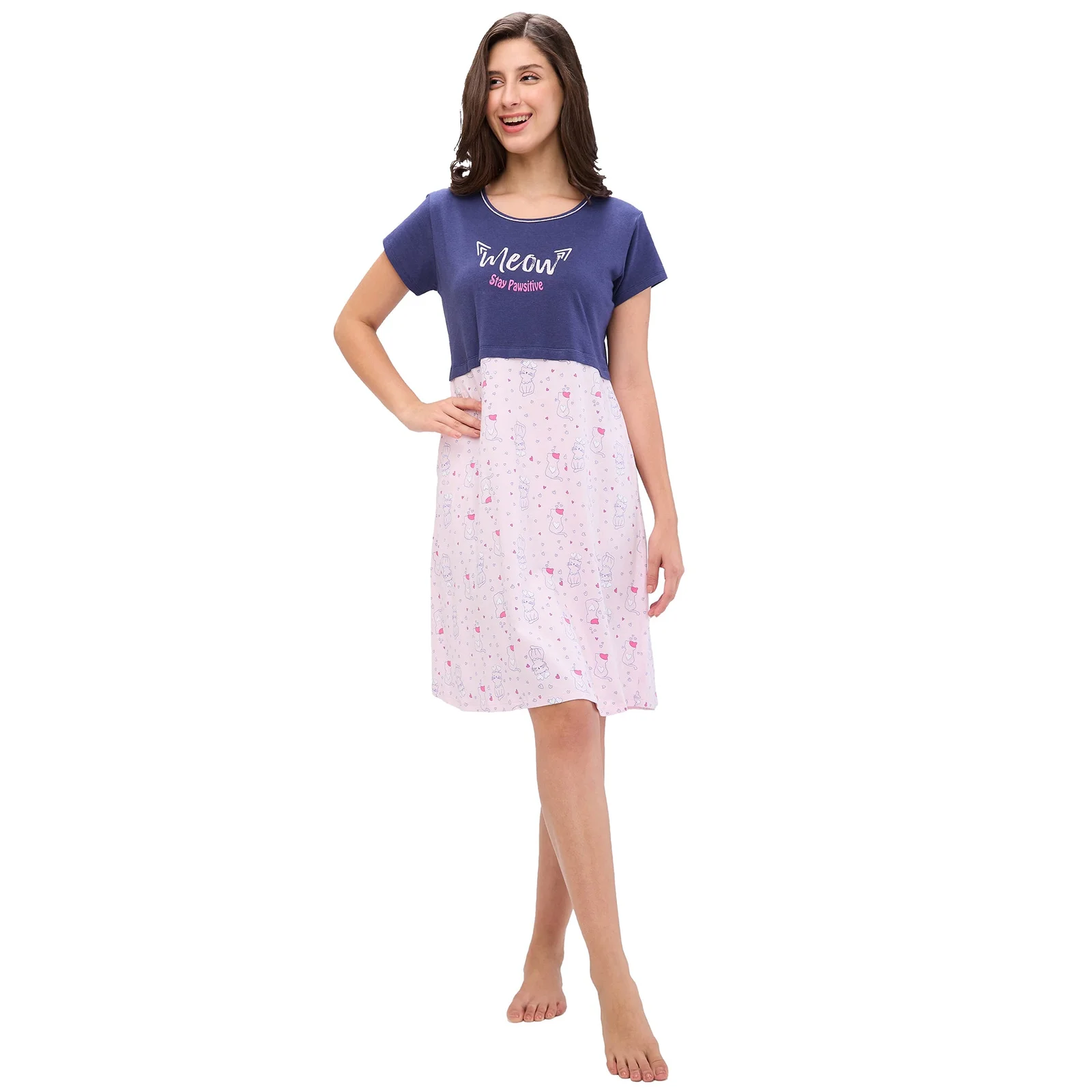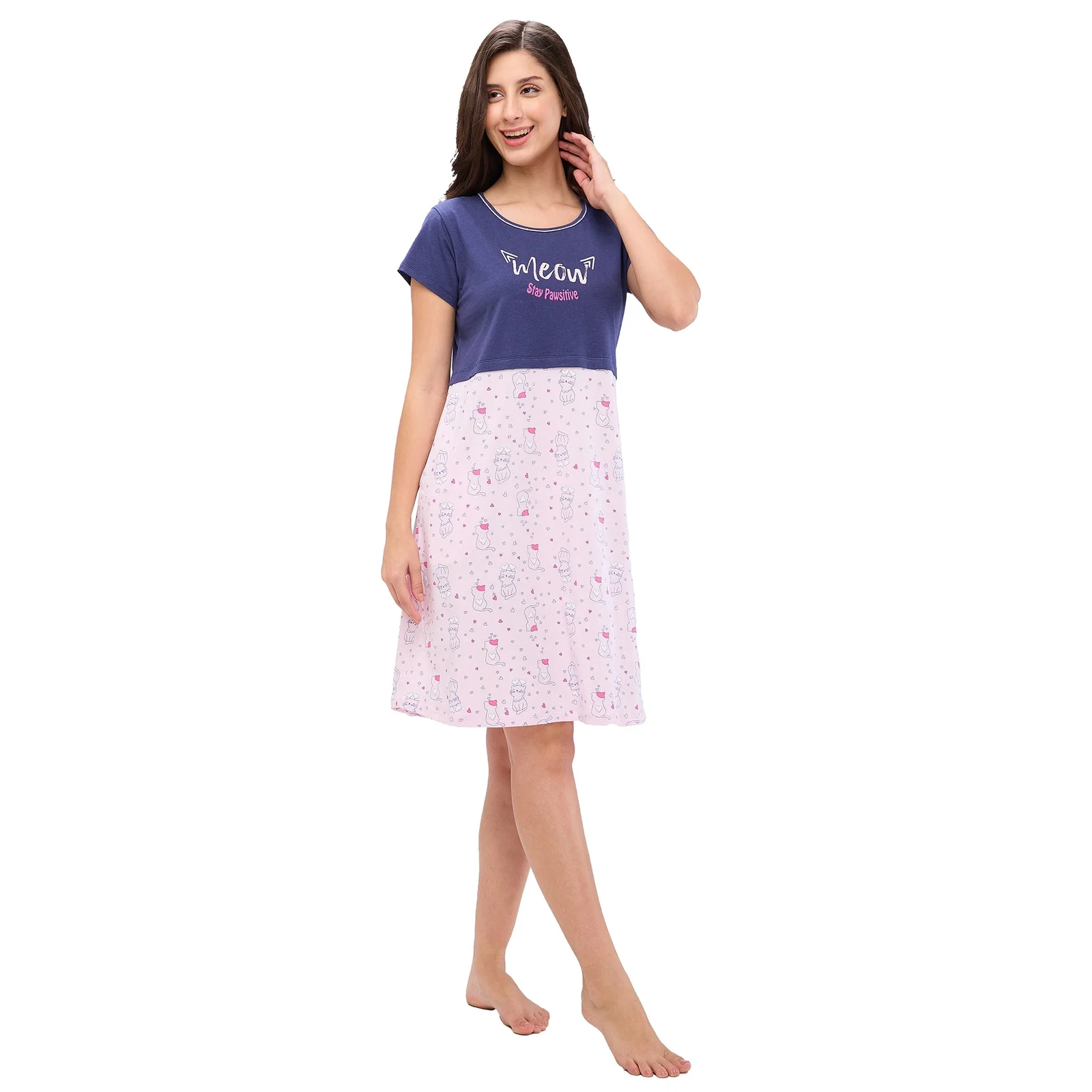 Juliet Women’s Printed Premium Cotton Short Nighty Night Suit R-HN-19465 blue