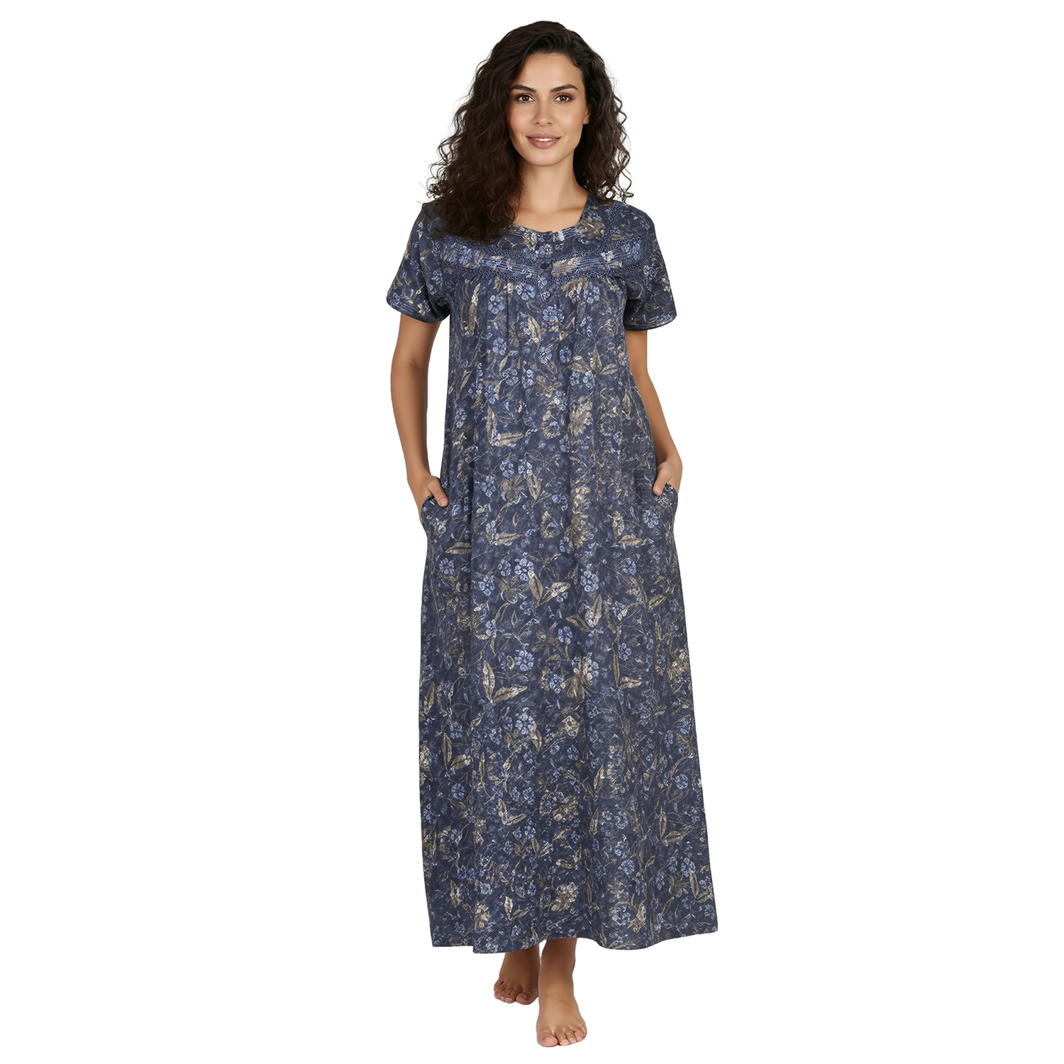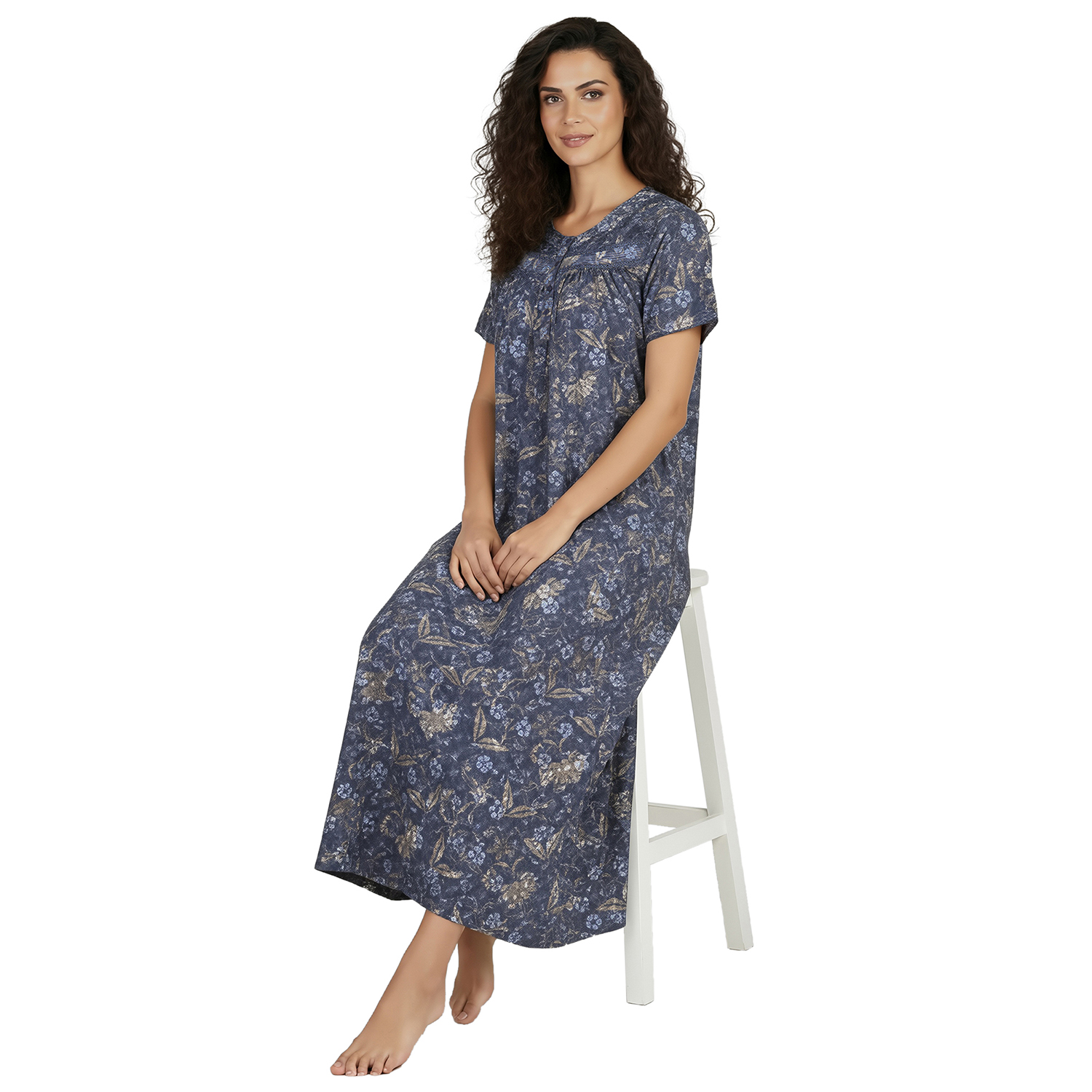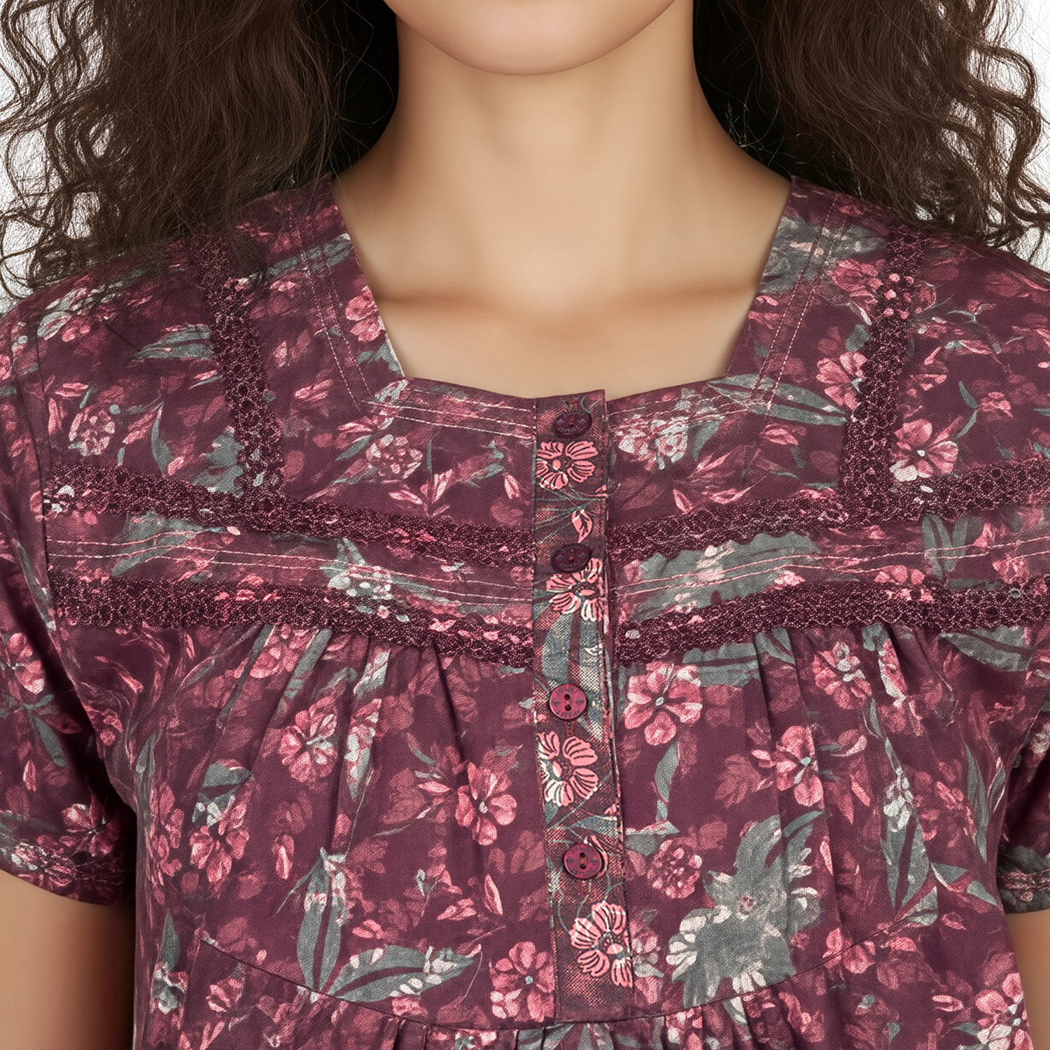 SCH460913 – Printed Poly-Viscose Nighty for Women – Square Neck, Half Sleeves