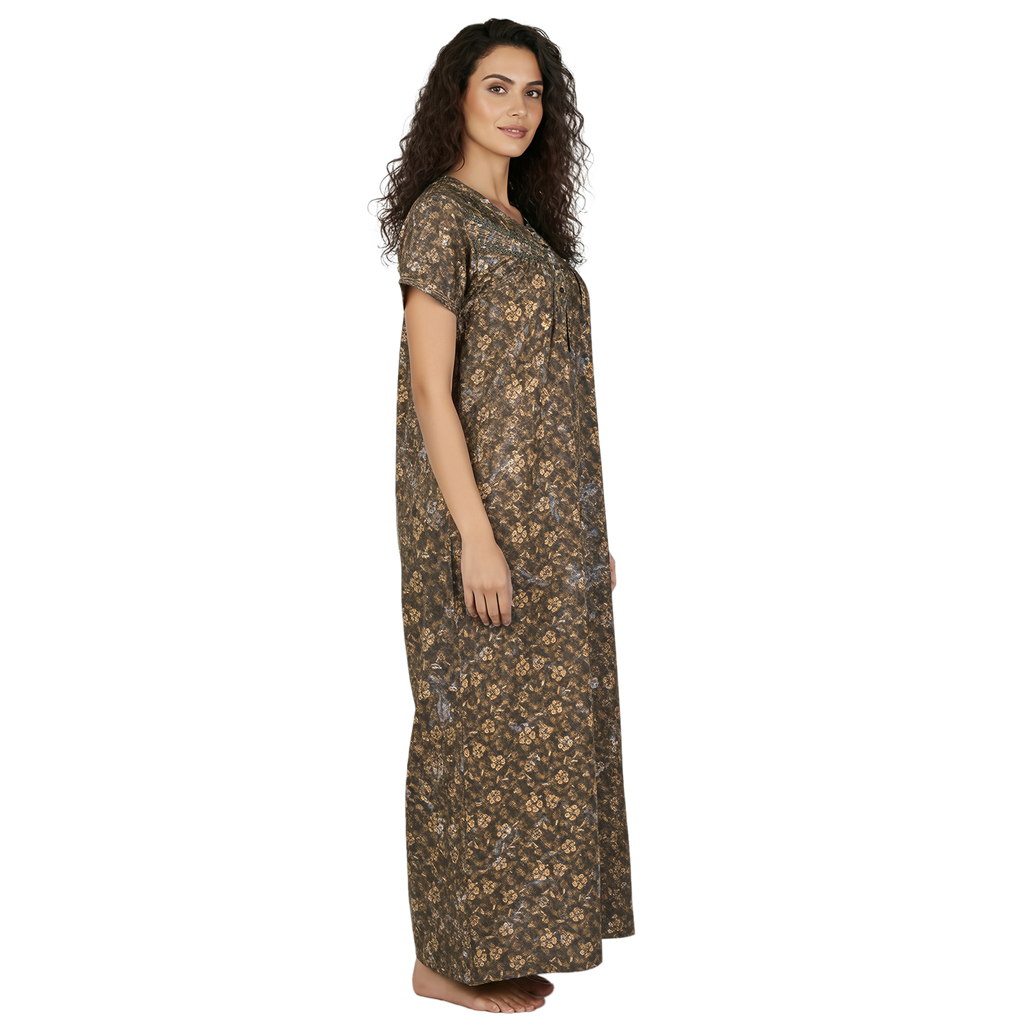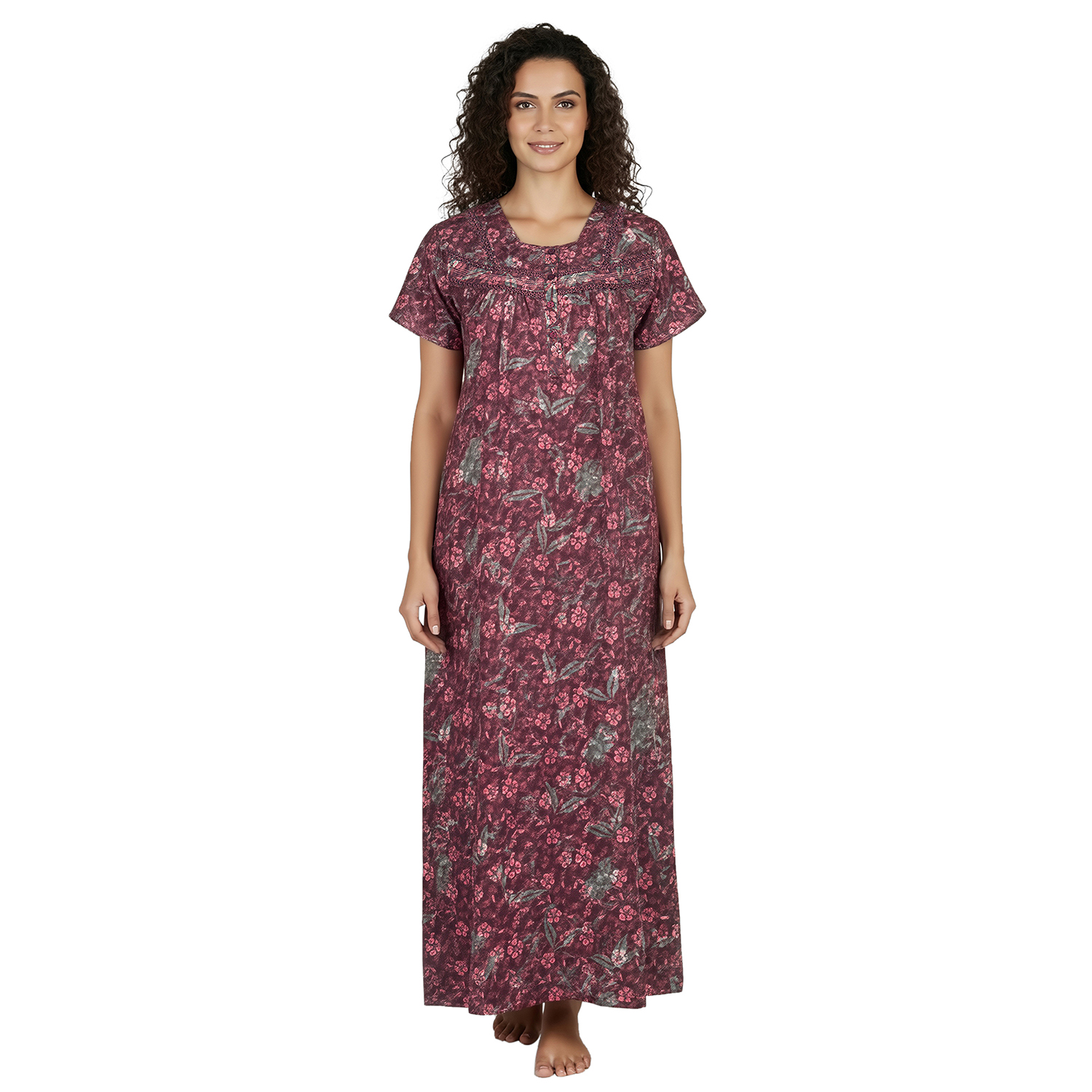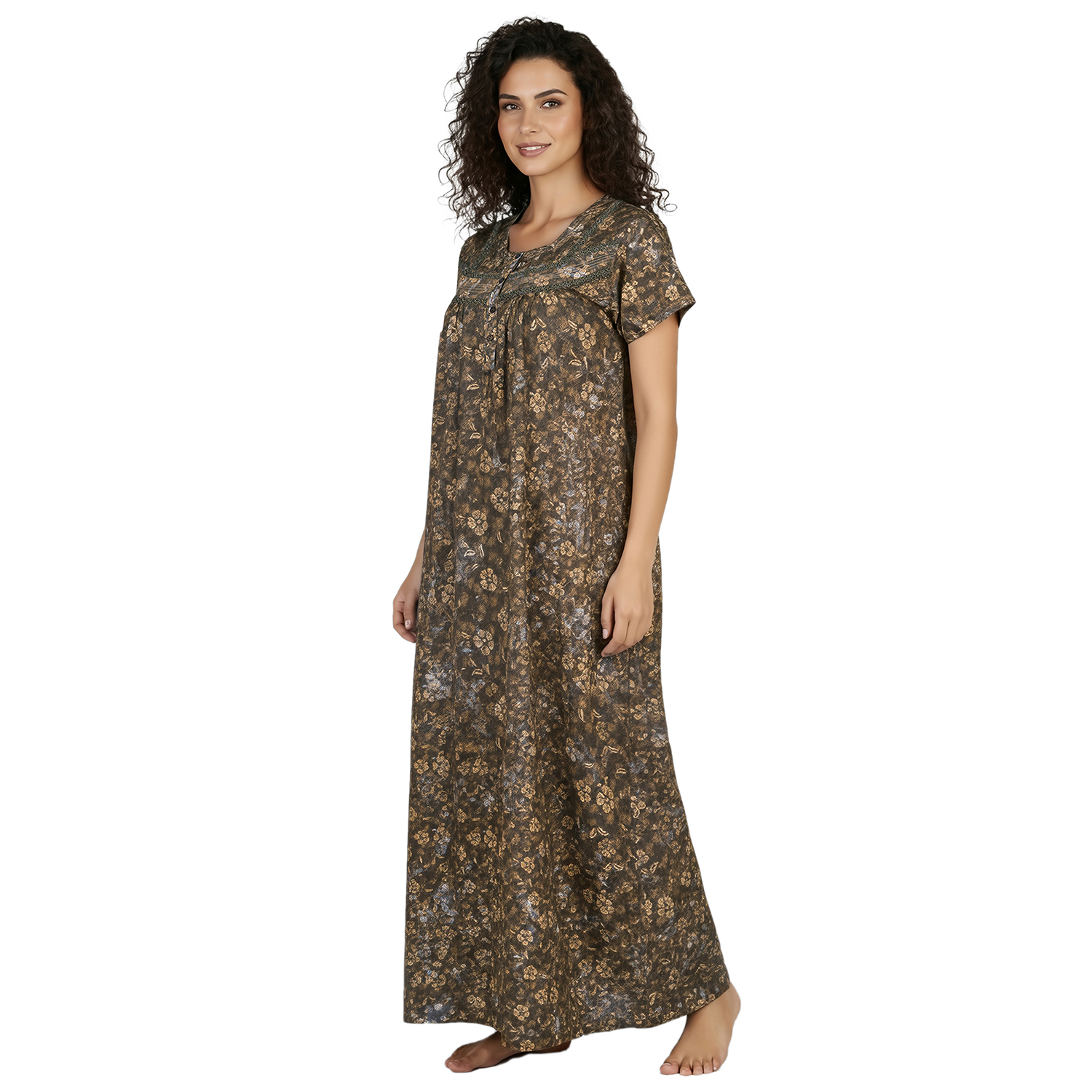 SCH460913 – Printed Poly-Viscose Nighty for Women – Square Neck, Half Sleeves