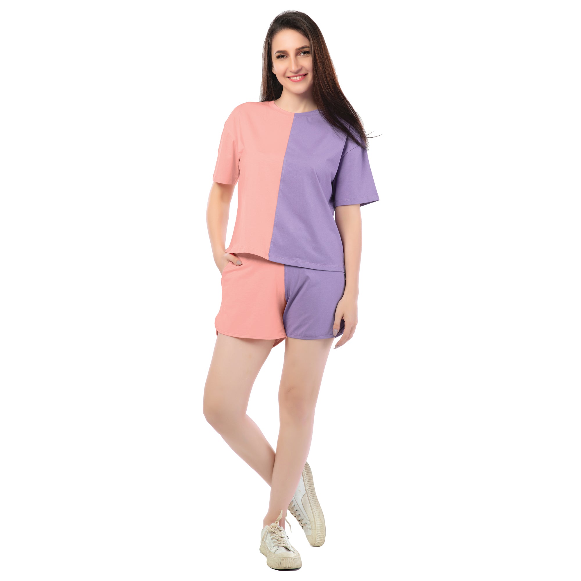 Elevate your casual wardrobe with this trendy shorts and t-shirt co-ord set, featuring a sleek dual-color design. Crafted for both comfort and style, the relaxed-fit t-shirt pairs effortlessly with matching shorts, creating a laid-back yet polished look. Whether you’re heading out for a day of fun or lounging at home, this co-ord set offers the perfect blend of versatility and modern flair. Soft, breathable fabric ensures all-day comfort, while the eye-catching contrast of colors makes a bold fashion statement.